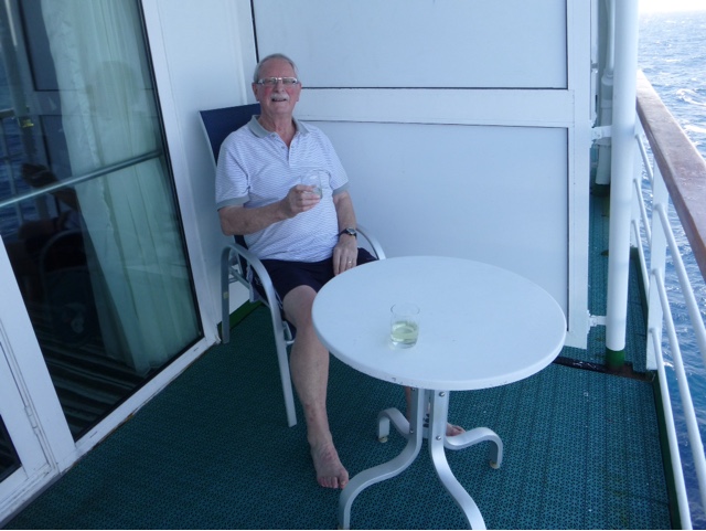 We returned to our cabin for a little aperitif before lunch (we had some wine left over from dinner the other night) and then wandered up to deck 12 for some lunch.